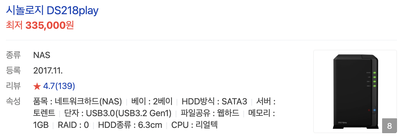 처음 나는 DS218play 모델을 샀다. (218은 2018년도 버전이다.)