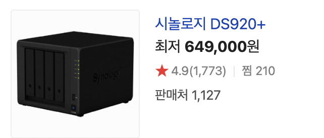 Synology NAS 기기와 + NAS에 사용될 HDD를 구매하면 비로소 NAS가 구성된 것이다.
